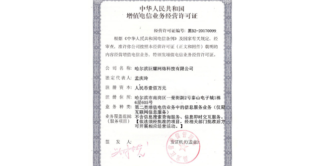 | 哈爾濱巨耀網(wǎng)絡科技有限公司·版權(quán)所有 | 地址:哈爾濱市南崗區(qū)西大直街118號哈特大廈17層 |
